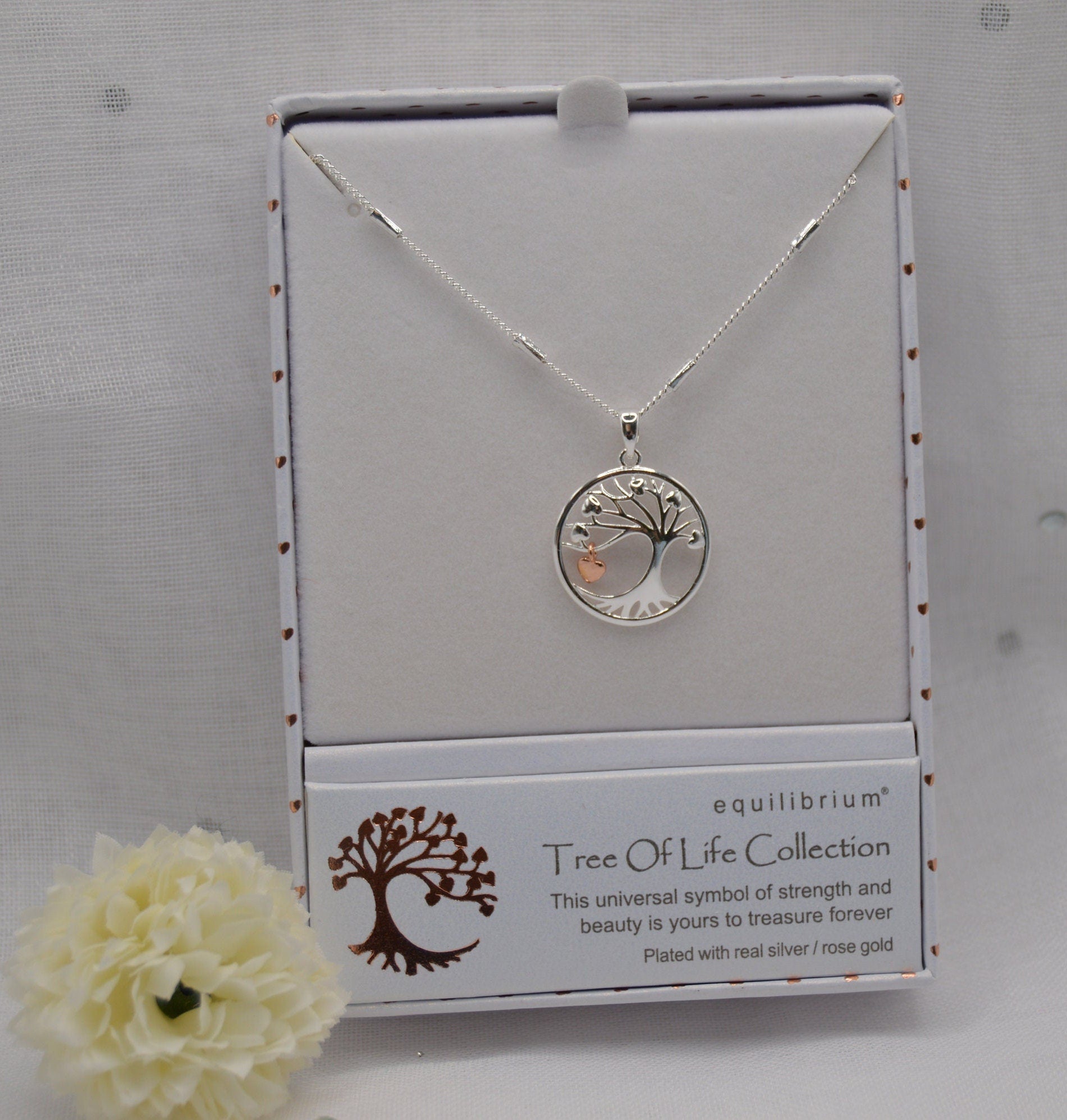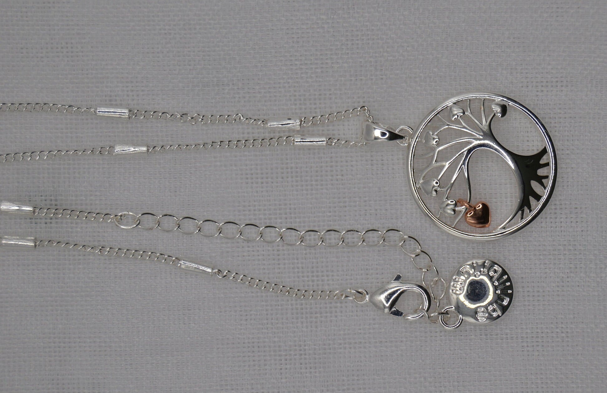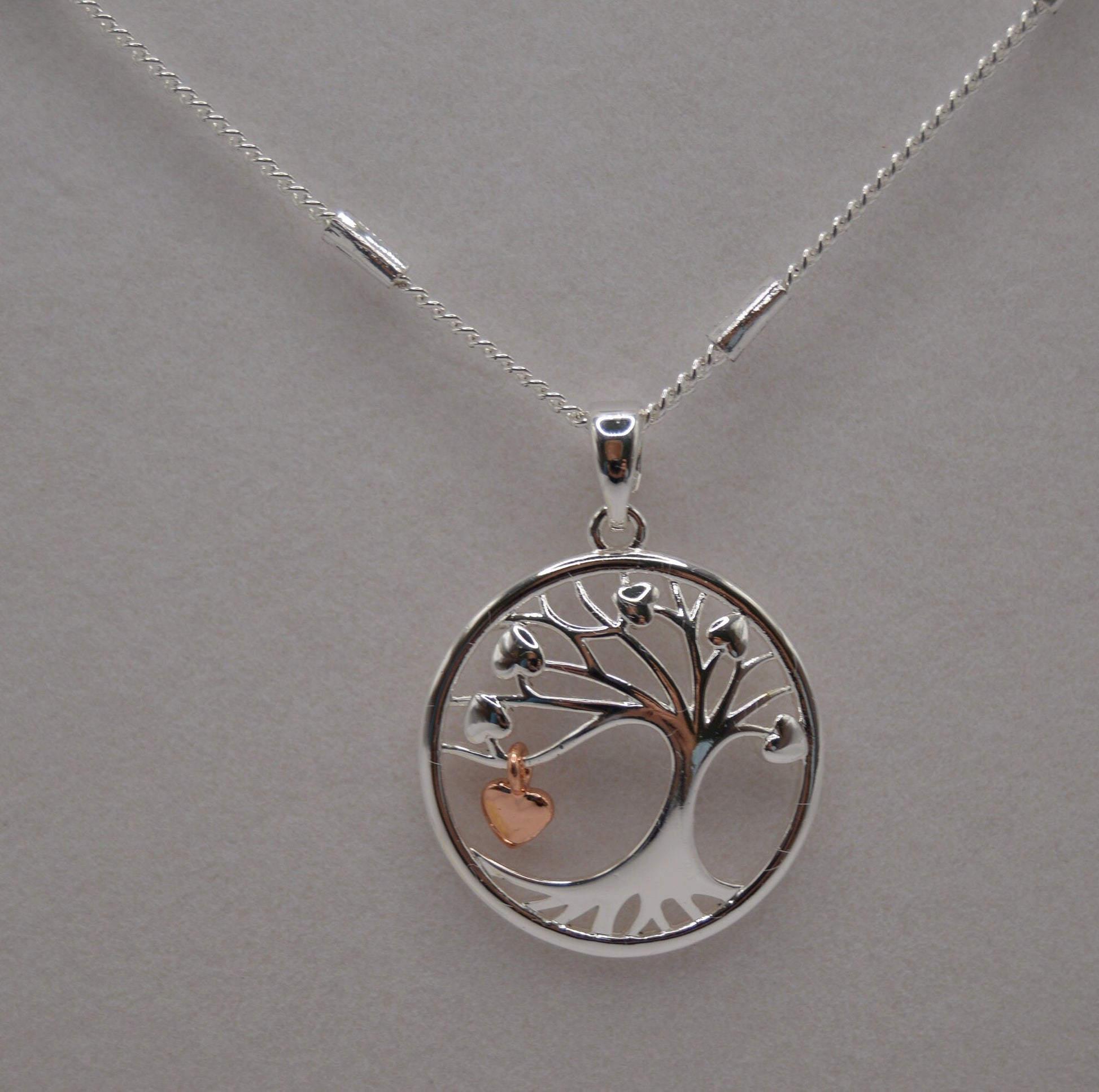 Tree of Life with Dangly Heart Neckless, Silver Neckless, Gold heart, Tree design, Gift for her, Jewellery